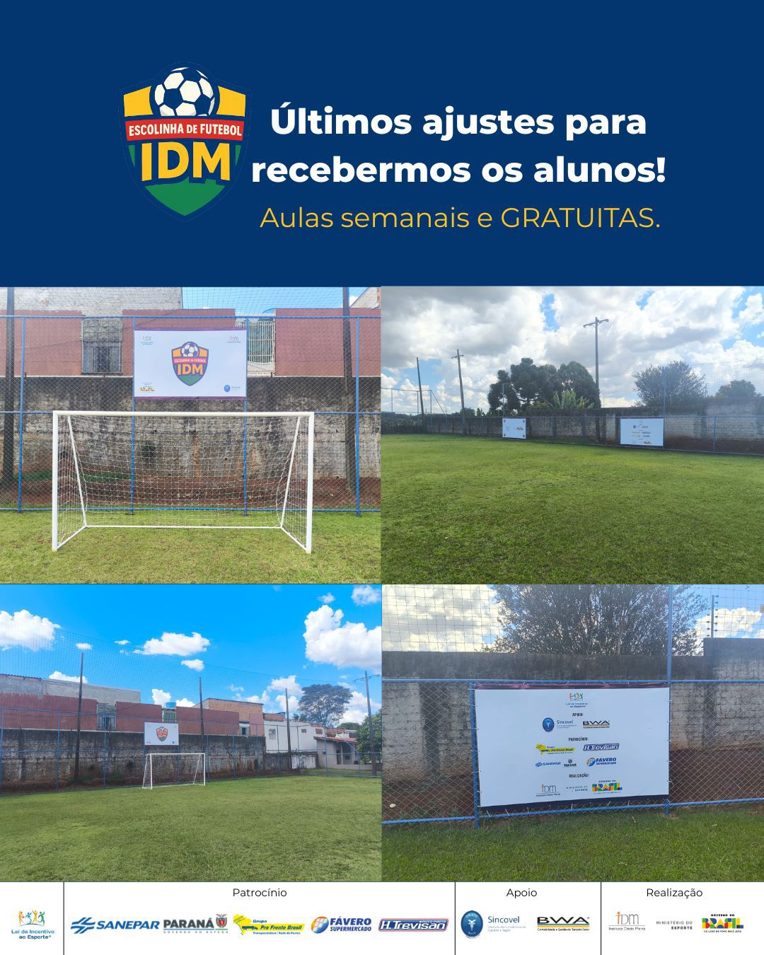 Ajustes finais! ⚽️ Neste mês de março iniciaremos oficialmente o projeto esportivo social Escolinha de Futebol IDM, que irá atender alunos ... -