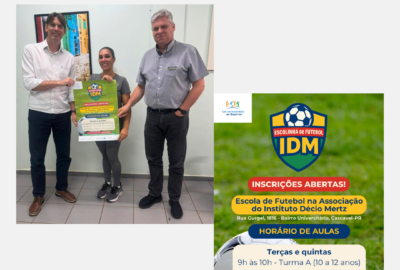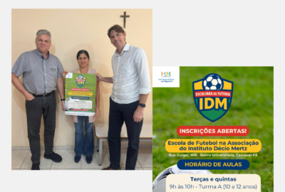 Divulgação Escolinha de Futebol do IDM Dando continuidade às visitas de parceria, o presidente do Instituto Décio Mertz - IDM e representante do SINCOVEL, William Fischer, esteve no ...